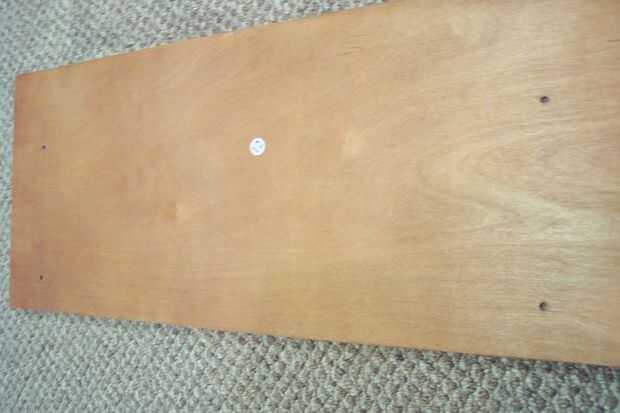 Ahora es el momento para perforar pequeños agujeros en un lado de cada estante. Primero necesita encontrar una broca del mismo tamaño que los conectores de lego. Luego necesitas trazar puntos pequeños en la parte inferior de cada anaquel donde taladrará. Utilizando el dibujo de las medidas de los conectores te puede representar cuatro pequeños puntos en la parte posterior de la plataforma que corresponden a los conectores. Ahora puede perforar estos puntos. No perfore totalmente a través de mis consejos para mantener el frente buscando agradable, pero si desea puede perforar todo el camino y un conector más completamente a través para conectar a la parte inferior de las piernas para la siguiente capa del palillo.