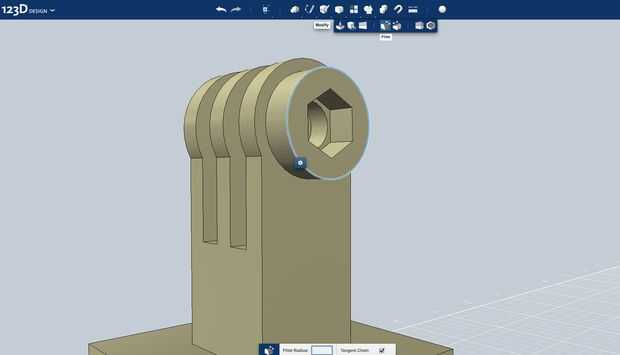 -Seleccione el borde del círculo y el borde de 1 mm de radio filete de filete