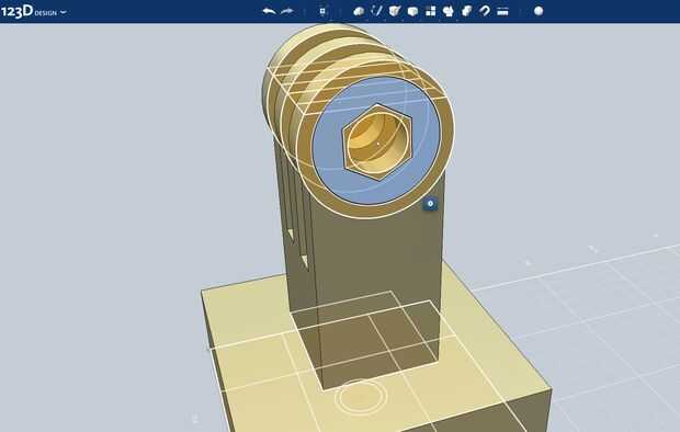 -Crear un círculo con un diámetro de 5,6 mm y extruyelo -14.8 mm con la opción cortar en el menú de extrusión
