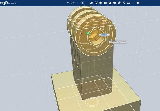 -Crear otro círculo pero de 11,9 mm de diámetro y esta a 3,6 mm del modelo