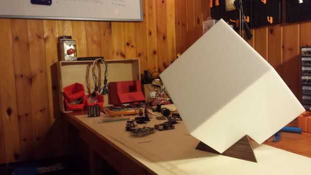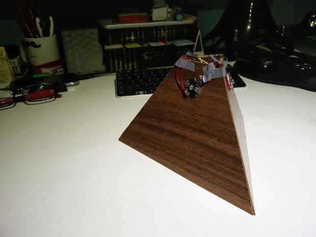 Después de darse cuenta que las dimensiones del cubo no era correcto nos ordenó otro cubo, esta vez con un agujero de ángulo de 60° en el cubo y con un borde correcto 25cm.