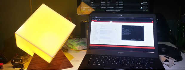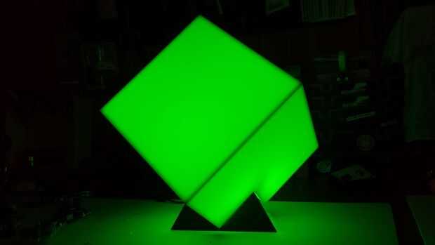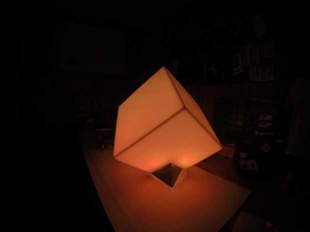 La iteración final del producto incluyen una base más pulida en madera y un cubo de plexiglás.