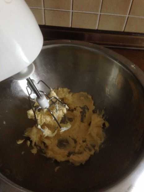 Para hacer el relleno, mezclar la mantequilla con una batidora de mano para obtener una consistencia cremosa, agregar el azúcar, sal, huevo y clara de huevo y revolver bien. Tamizar la harina y añadir las almendras, esencia de almendra, leche y Ron a la mezcla de mantequilla y remover bien.