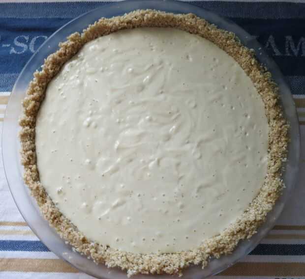 Drenar completamente las tuercas. Combinar nueces y relleno de ingredientes en alta potencia licuadora o procesador de alimentos; procesar hasta completamente lisa, añadir líquido como sea necesario hasta que el relleno es suave (empecé con 4 cucharadas sirope de agave de arce y es necesario añadir 1 más cucharadas más 1 cucharada de agua para aflojar el relleno suficiente facilidad gire alrededor de las cuchillas). Transferencia de relleno para tarta preparada y congelar hasta que esté firme, por lo menos 3 horas.