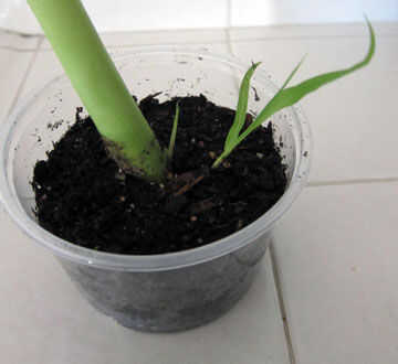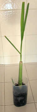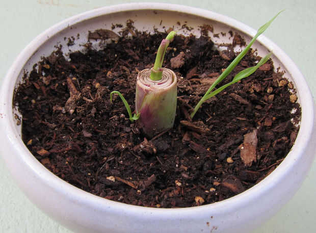 Hoy es 20 de mayo y tengo un tallo plantado en una maceta de fuera, un tallo en un recipiente interior y el tallo final está plantando en el suelo.