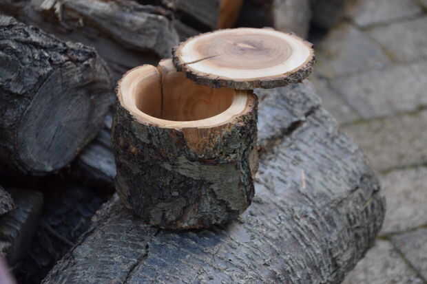 Así que para este proyecto usé un pedazo de leña que tenía las grietas menores en él de mi pila fuera. Usted quiere asegurarse de que la madera está seca o de lo contrario se dividir y romper de una vez lo. Video del producto: https://www.youtube.com/watch?v=mWZ7M-7GEbc&feature=youtu.be