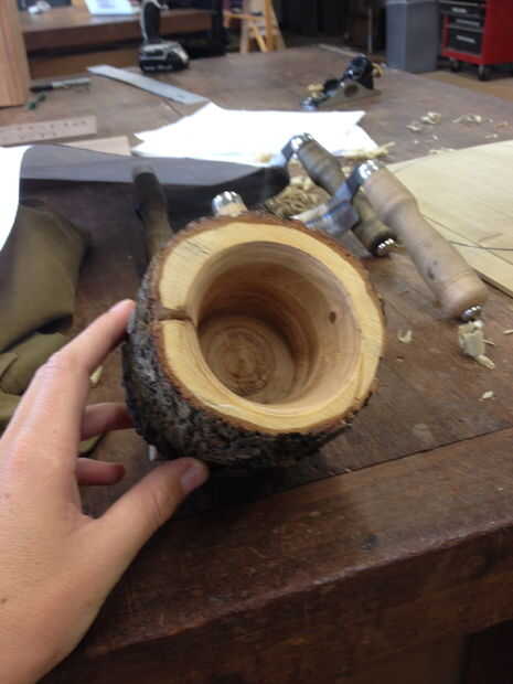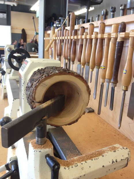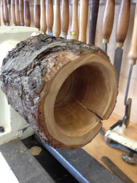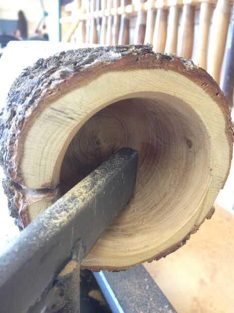 Ahora viene la diversión parte crucial. Esto puede tomar un poco de práctica, pero una vez que el cuelgue de ella se convierte en un montón de diversión. Sin embargo puede ser muy peligroso así que ser cautiuos y tómese su tiempo. Lo primero que vas a tener son afiladas herramientas, esto es clave porque de lo contrario cogerá la madera y no se corta. Las herramientas que utilicé fueron el sesgo y un raspador de punta redondeado, son bastante comunes y más versátiles herramientas. Ahora que saque comenzó su stock y diapositiva de una herramienta en su torno. Coloque el resto tan profundo como se pueda en su registro, pero sin golpear su registro ya sea. Ahora en su máquina y constantemente hacia fuera hasta el fondo y los lados. Asegúrese de deshacerse de toda la madera quemada que creamos durante la perforación hacia fuera el registro.