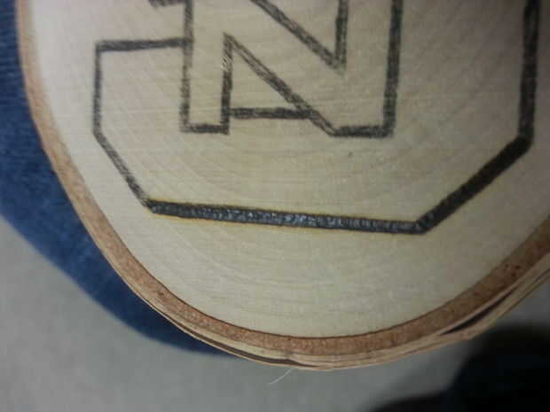 Ahora utilizo la punta para seguir los bordes de la fosa de quemado para suavizar cualquier bamboleos o áreas de la primera línea no llegó todo el área sombreada.
