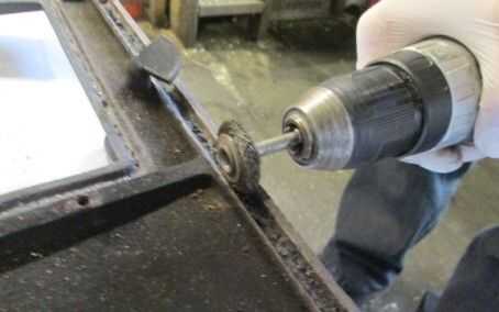 Usando un cepillo de alambre Limpie hacia fuera de las ranuras de la cuerda hasta que estén completamente libres de escombros. Si tienes acceso a un taladro y un cepillo de alambre rotativo esto hará un trabajo más rápido. (Por favor, use protección para los ojos).