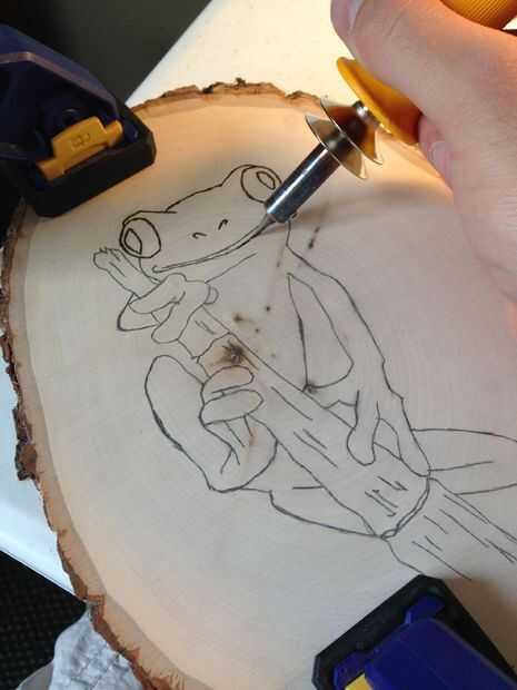 No sostenga la punta en un solo lugar ya que producirá una quemadura evidente marca en madera.