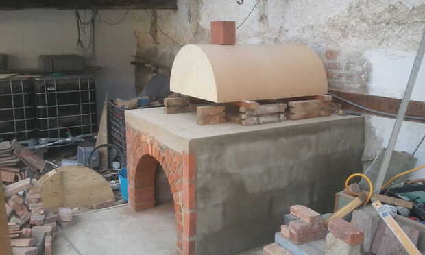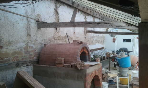 el mortero debe ser alta temperatura, por lo que se utilizó una mezcla con cemento y arena de arcilla de terracota, se apaga pero es más difícil cuando se disparan.