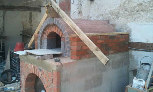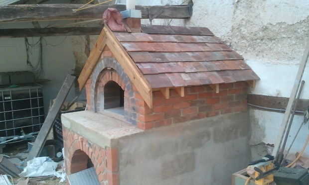 Quería el horno para que parezca una pequeña casa acostumbrados algunos madera vieja para hacer un marco de techo