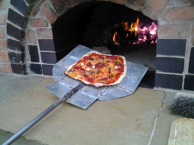 Dejé un saliente en el frente y los lados y hay suficiente espacio para sacar la pizza girar y ponerse de nuevo en