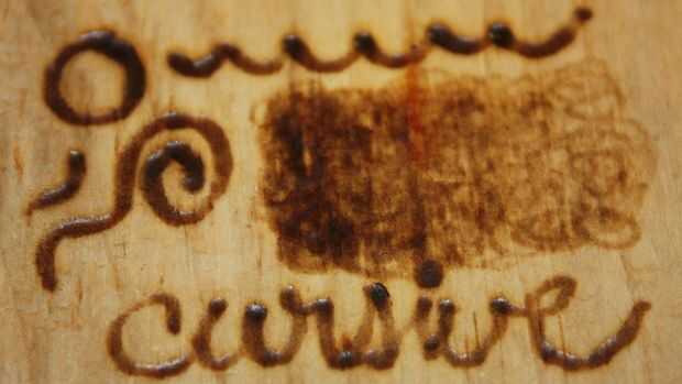 La extremidad caudal es suave y redondo. Porque es esto se desliza muy bien sobre la madera y no accidentalmente corte. Es fácil cambiar las direcciones y hace espirales y remolinos. Sin embargo, es difícil hacer líneas finas como no se puede cambiar el grosor de la línea de que hacer. Trabajando en un movimiento de círculo pequeño y continuo puede crear un efecto de sombreado. Círculos más lentos, mayor resultará en un tono más oscuro, como acodar el efecto en ciertas áreas. También puede ser utilizado para hacer puntos.