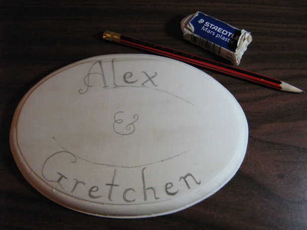 Ahora agarra el lápiz otra vez y vamos a dibujar en las letras. Recordar, dibujar ligeramente. Si arruinara, todavía tiene oportunidad de borrar por ahora! A menos que dañó la madera presionando duro, entonces estará allí para siempre y tienes que hacer otro.