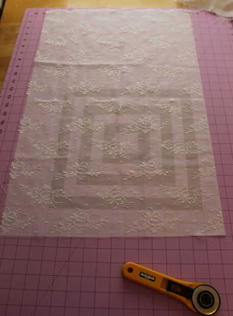 Tomar una pieza de encaje y una pieza de forro y coserlas juntas en la recortada no. Si puede decir la diferencia entre el lado derecho del cordón y el lado derecho del cordón, coser los lados mal juntos.