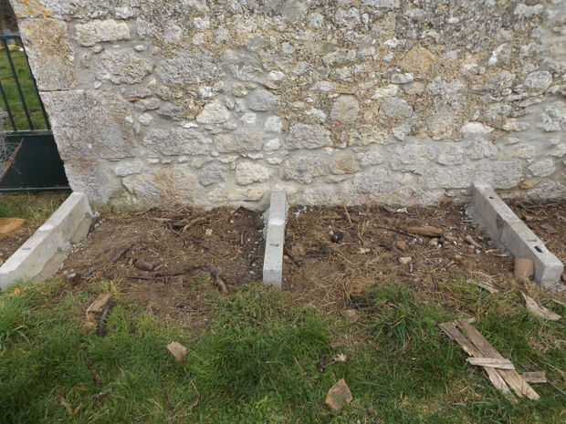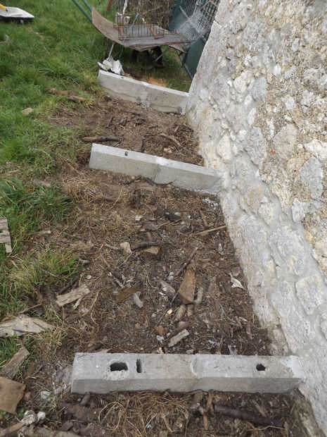 Cada pie está hecho de bloques concreto 2 (50cm de largo) pegados juntos y a la tierra mediante hormigón.