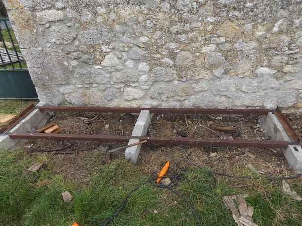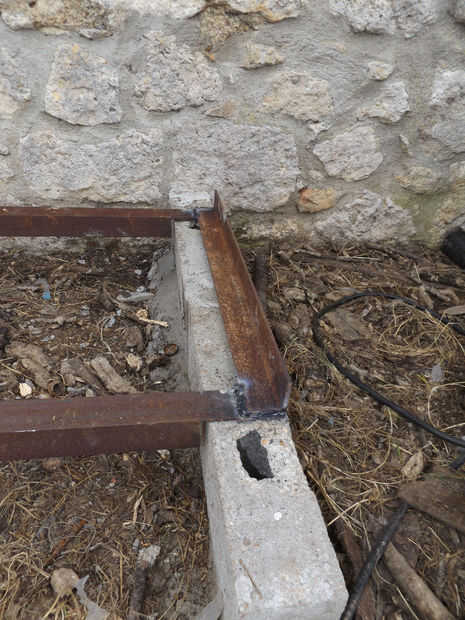 Para pegarse a los pies 3 y permiten poner los registros de la humedad del suelo, se pondrá un marco del hierro encima de los bloques de hormigón.