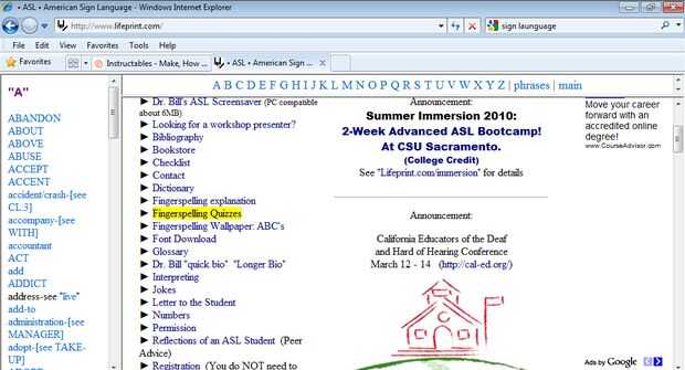 1) luego vas a www.lifeprint.com. Si no lo encuentras, luego ir a www.Google.com y buscar señas.