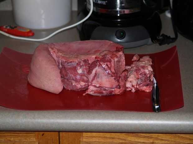 Paso 7: Cortar la lengua. En el extremo de la lengua allí será poco bolsillos de grasa tan solo tome su tiempo y cortar la carne en rodajas.