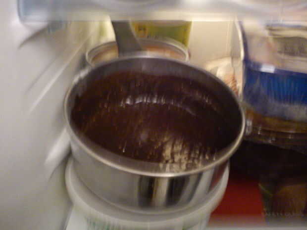 -Retire del fuego y agregue el chocolate hasta que suave y derretido.