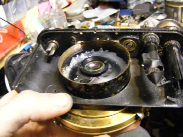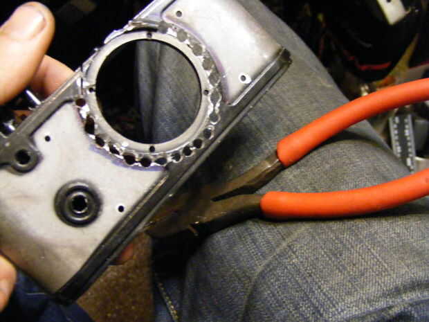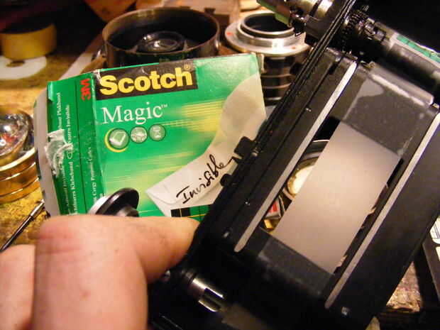 use cinta mágica, scotch tape, escribir en la cinta, para comprobar el foco, mientras que el posicionamiento de la lente, dirigida por 2y un poco m se centran en el apature completamente abierta, cuando cerraron debe dar una feria amplia profundidad de foco. drilld agujeros y corte luego archivo para ampliar lente montaje, porque im agotando en dremel discos de fibra