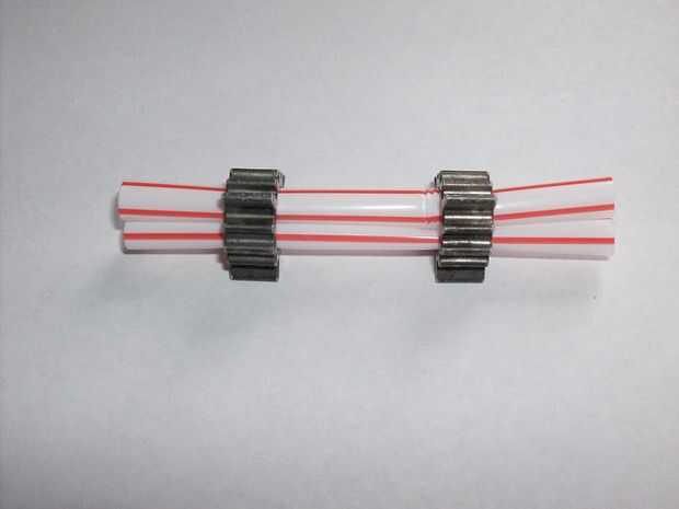 Aquí están los electrodos montados en las pajas. Las pajas de actúan como un apoyo y un separador aislante.