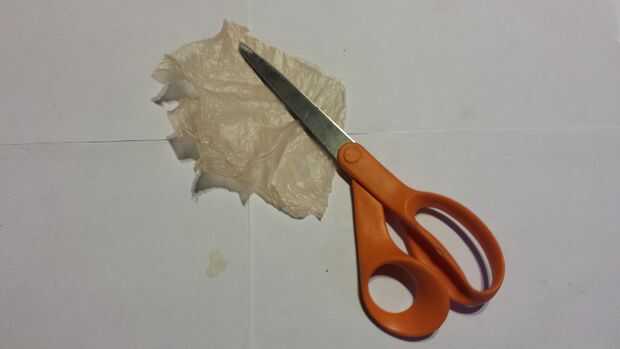 Ahora se toma la bolsa de plástico y cortar un cuadrado grande, aproximadamente 3 a 4 pulgadas de ancho. La medida no necesita ser exacta siempre y cuando cubre la lente entera cuando pones el Sugru en.