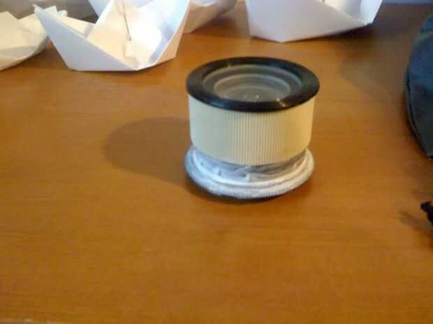 Cool, estás casi allí! ahora solo tienes que conseguir tu sh * t, literalmente vas a necesitar para montar su montaje en el objetivo. Su objetivo se centra correctamente derecha?! Mi manera de unir las dos piezas era utilizar masilla. ¿Por qué? Porque todo el mundo ama masilla! Es también luz apretada cuando su grueso vas a necesitar cubrir el exterior y el interior de la lente. otra vez tapar la abertura con cinta!