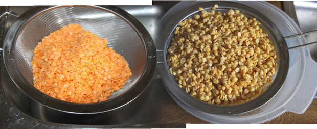 La última imagen muestra que he tomado un poco de rojo y lentejas de Toor y mezclados entre sí.