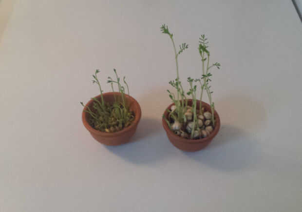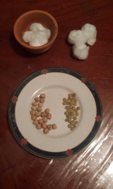 Tomar cualquier envase ladrillo, plástico etc. de cerámica... línea con algodón, mojar el algodón con agua y extender los granos sobre el algodón.