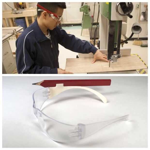 La gente suele pone un lápiz detrás de la oreja para su custodia, pero al usar el equipo de seguridad apropiado no siempre es posible. Este templo de reemplazo de lentes de seguridad sostiene el lápiz firmemente convenientemente.