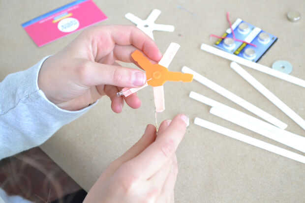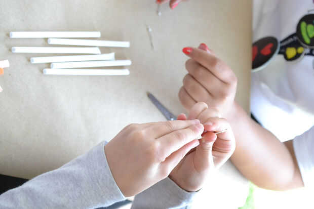 Pegamos con cinta dos leds un dos strawbees de estrella.