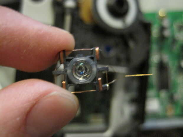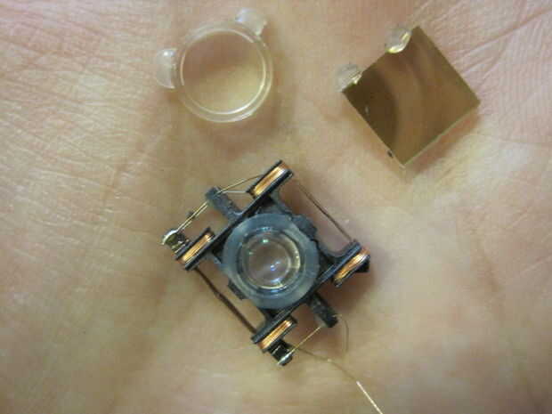 En la máquina hay tres lentes. Usted puede ver luego en mi mano, son pequeños y difícil de salir.