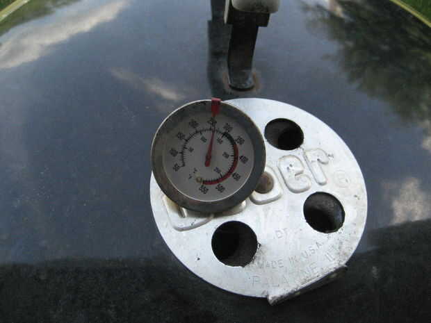 Deje la carne por 3 horas. Mantener a la temperatura de la parrilla alrededor de 225-250F mediante la regulación de las rejillas de ventilación. Orificios más pequeños = temperatura más baja. Cada hora o así, verifique si tienen suficiente combustible y añadir carbón si es necesario.