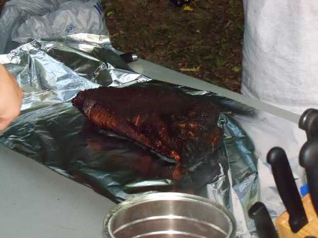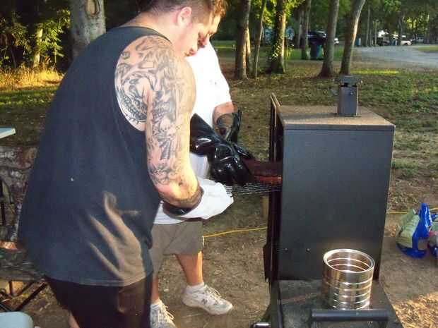 Ahumado de carne en barbacoa hoyo sin caja para ahumar