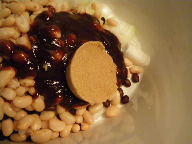 esta receta surgió debido a un buen, estaba tratando de hacer bbqbeans pero fueron secreción/juicey así que comencé a intentar ligarles, los resultados fueron lejos de bbqbeans pero todo el mundo piensa que es lo que era, era bastante bueno. La "rece