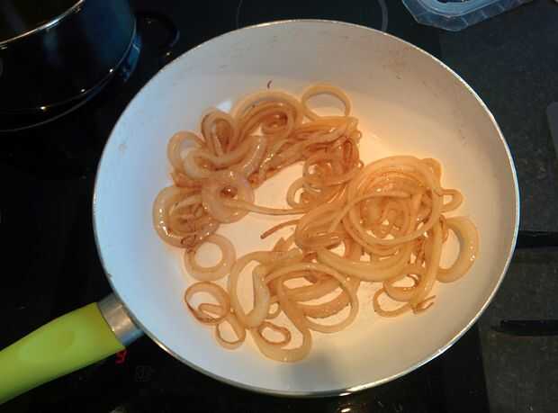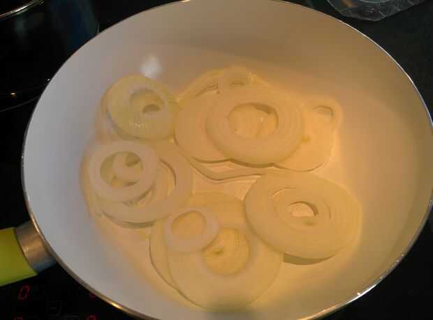 Cortar la cebolla en aros.