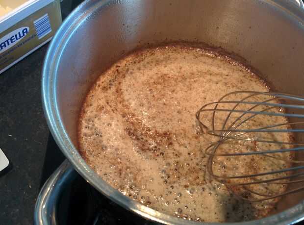 Bata hasta que no se puede ver cualquier residuo que se pega a la sartén.