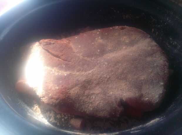 Coloca el asado en la olla y espolvoreado el aliño encima de ella. Condimento adicional era rociada en el caldo.