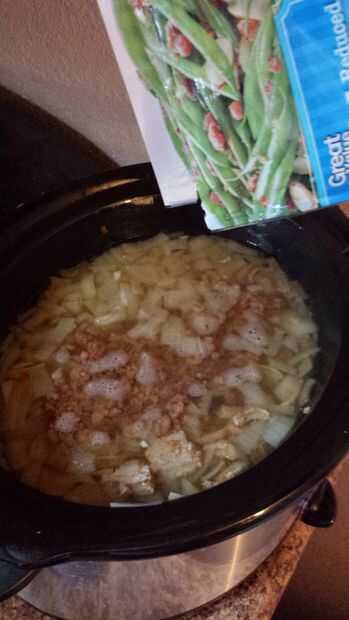 La receta fácil perfecta para un día de invierno!Paso 1: Habas rojas cocinas lentas y arrozbolsa de 1 libra de habichuelas rojas secas7 tazas de agua1 pimiento verde, picado1 cebolla mediana, picada3 tallos de apio, picados2 dientes de ajo, picado o