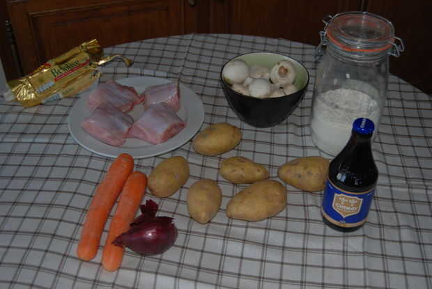 • 1 cerveza oscura (33cl / 12 oz líquido) (Chimay va muy bien con conejo, pero la mayoría de las cervezas brown trabajará).