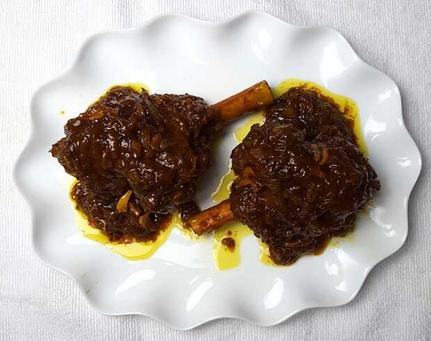 Cubra firmemente con una tapa o una capa de papel de pergamino y de aluminio y hornear durante unas 3 horas o hasta que el cordero esté tierno. Reducir el horno a muy baja y mantener caliente hasta listo para servir.