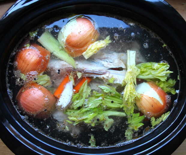 desde que empezamos a criar pollos de carne hace un par de años he sido asar pollos enteros sobre una base regular. Al principio sólo estaba lanzando los huesos sobrantes, pero rápidamente me di cuenta que necesitaba aprender a hacer caldo de pollo.