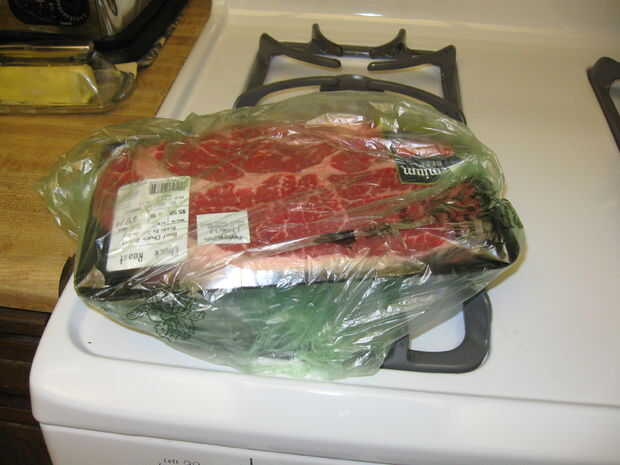 Antes de empezar a picar para arriba de las verduras, tomar la carne descongelada en el refrigerador y establecidos en algún lugar fuera del camino. Para mí que pasa a ser en la estufa, que no se utilizaba. Todo lo que quieras hacer es ser más caliente que la nevera cuando vayas a dorar más adelante.