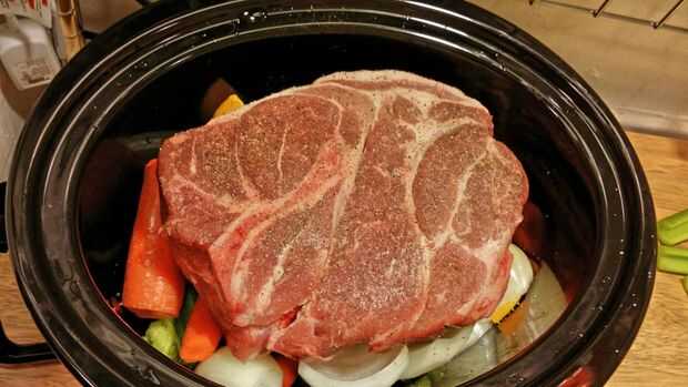 Utilicé un trasero de cerdo 4.25 lb y cabe perfectamente en mi olla de 6 cuartos con apenas alrededor de una pulgada alrededor de todo el camino.