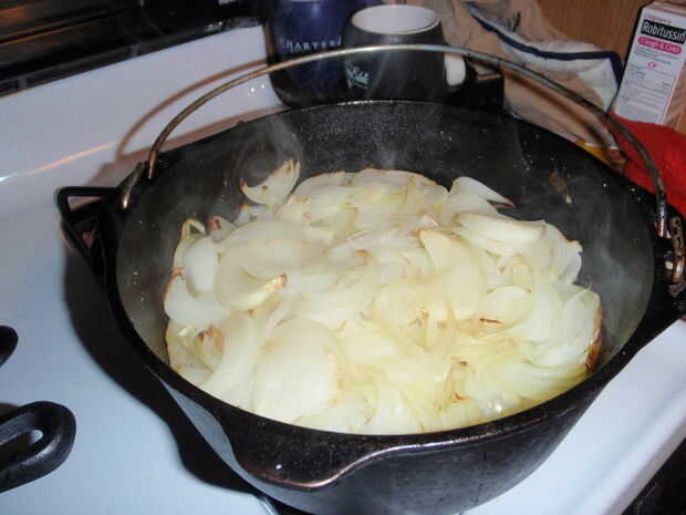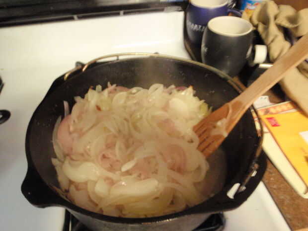 A la olla vuelva a poner el horno para más de lo mismo. Agregue las cebollas después de una hora. Si te sientes valiente, puedes dejar la tapa una disparatada por lo que puede salir vapor. Yo no soy tan valiente como mi tapa tiende a caerse. Si haces esto, poner la olla en el horno antes de en la tapa. Mezclar las cebollas otra vez después de una hora, pero te dejas allí para sobre una hora y media.