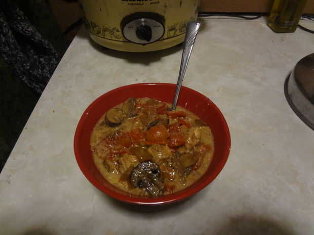 Servir sobre tallarines de huevo, spaetzle, arroz, pan tostado rallado o lo que tu corazón desea. Disfrutar con un portero, cerveza o sidra... o una buena taza caliente de té si no eres un bebedor.