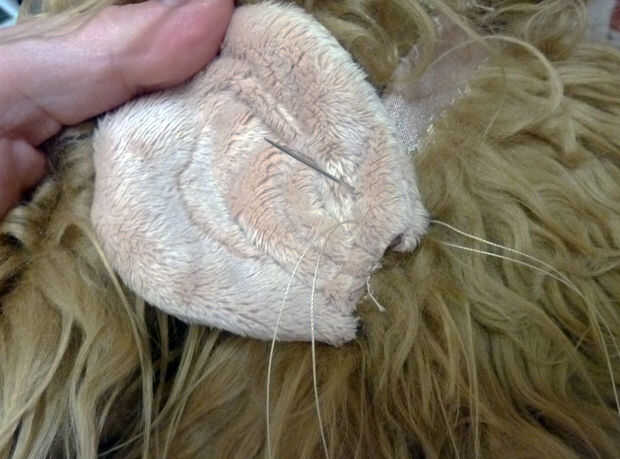 Por último, corté algunas formas de oído poco de forro polar y mano los cosen a la parte superior de la melena. Y fue completa!