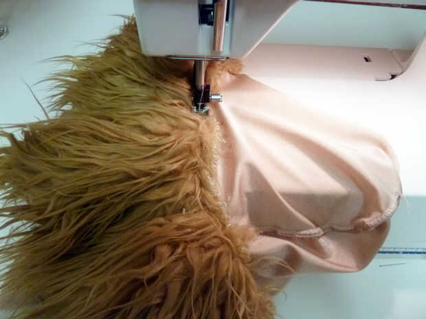 Primero había cosido abajo todos los pliegues en la piel y luego los une a la base de lycra. Resulta que esto no era realmente necesario, y puede sólo coser todo junto de una vez.